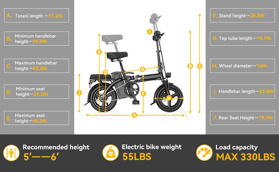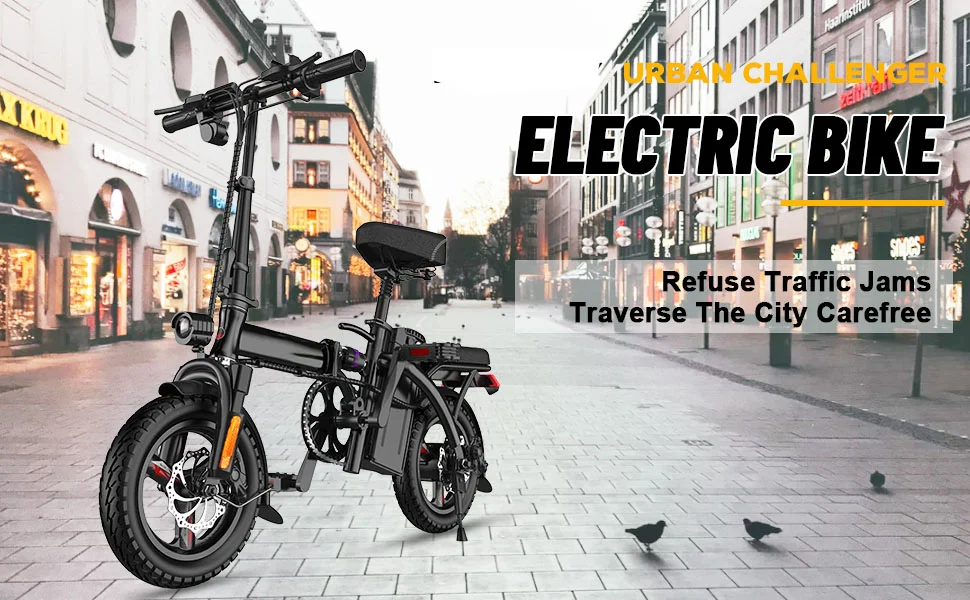 Multi-Shock Absorption Electric Bike,400W Motor 22MPH Max Speed, 14” Tire, 48V 15AH Removable Battery